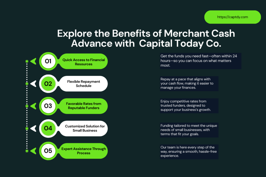 Need quick and flexible funding for your business? Look no further than Capital Today Co.’s merchant cash advance option. We understand the challenges businesses of all sizes face in securing funding, and we’re here to offer tailored solutions that meet your unique needs.